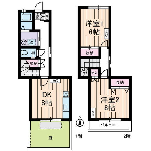 間取内容 洋室8畳   洋室6畳   DK8畳